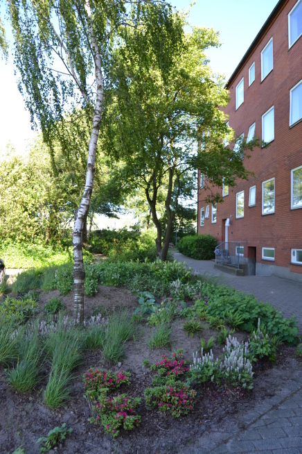 Plantekasser og den lille terrasse på nord-siden af nr. 11 - 13